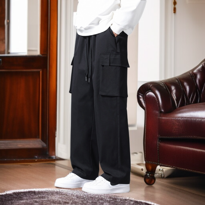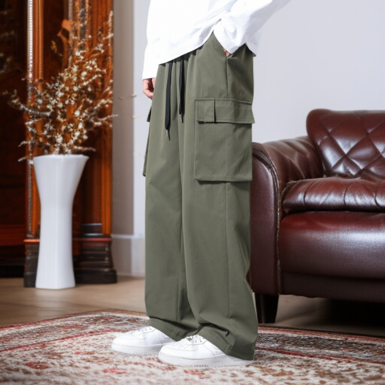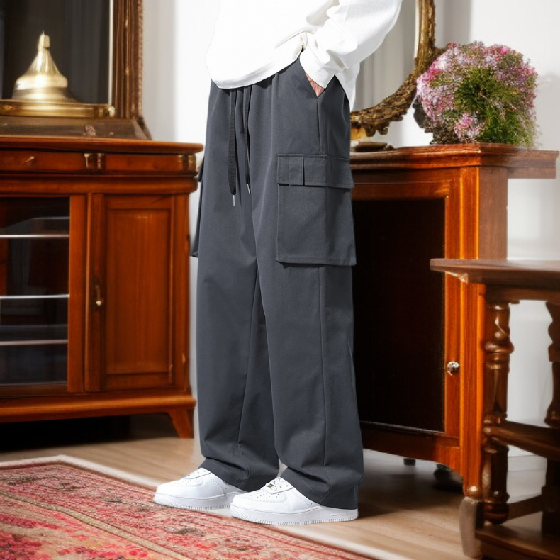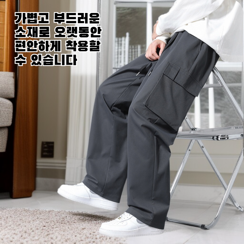 남성용 아이스 실크 스트레이트 카고 팬츠, 루즈핏 캐주얼 롱팬츠